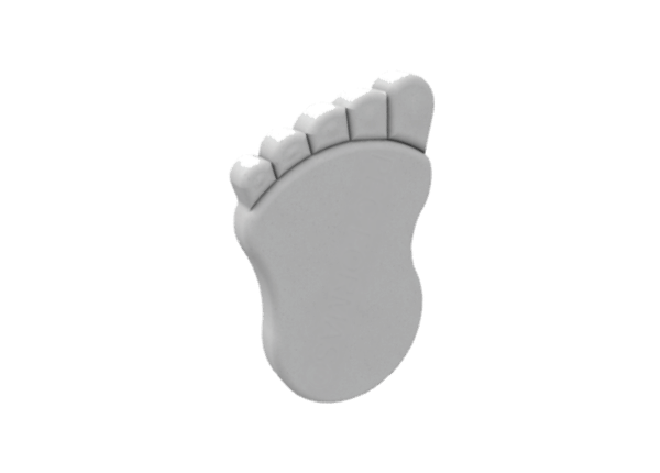 Piso em forma de Pé, de concreto, utilizados como pisantes e caminhos para jardim, os pisos pezinho Itulaje podem sem assentados diretamente na grama sem necessidade de contrapiso. Disponíveis no formato direito e esquerdo.